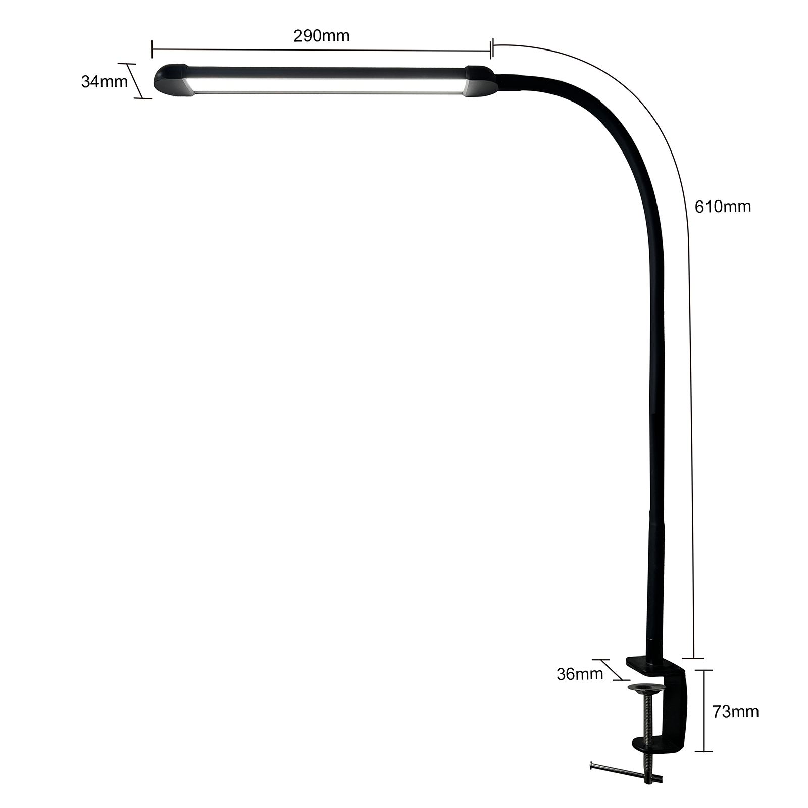 • Fully Adjustable Arm & Clamp – Swing, tilt, and rotate to light up any angle